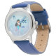 Kinderuhr aus Edelstahl mit blauem Lederarmband