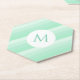 Personalisiert-Minze Grünstreifen Moderne Monogram Template Trendy Hexagon Spitze Top Paper Untersetzer.