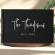 Die Einführung in unser Personalisiertes, elegantes Calligrafy Script Gast Book, wo moderne Eleganz und zeitlose Schönheit aufeinander treffen. Dieses exquisite Gästebuch enthält einen zarten, handgeschriebenen Text in einer schicken Kalligraphie-Schrift, der Ihrem besonderen Tag eine Touch raffinierter Eleganz verleiht. Dieses Gästebuch mit seinem langlebigen Hardcover-Design ist der perfekte Ort, um Ihre Hochzeitsfeiern für viele Jahre zu erleben. Mit Ihren Namen und dem Hochzeitstag individuell anpassbar, wird es zu einem personalisierten Erinnerungsstück Ihrer Liebe. Ob als Empfang-Signaturbuch oder als Foto-Gästebuch, es bietet einen atemberaubenden Rahmen, um von Ihren Gästen herzliche Botschaften und wohltuende Wünsche zu erfassen. Das elegante Calligraphy Script Gästebuch wurde in Schwarz und Weiß gestaltet und ergänzt mühelos jedes Hochzeitstil oder Dekor. Es ist nicht nur ein Gästebuch, es ist ein Symbol für die Liebe und Freude, die an Ihrem Hochzeitstag geteilt wird, was es zu einer unvergesslichen Ergänzung zu Ihrer Feier macht.