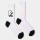 Tragen Sie mit Monogramm Socken im Stil mit diesem Paar Personalisierter, moderner Typografie Black Monogram Socken. Ein moderner Schriftart im Blockstil bietet den Fokus für das Monogramm, das jeweils auf der äußeren Kalbsfläche der Socke angezeigt wird. Ideal für Geschenke! Design ©Coastal South Designs.