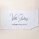 Chic Custom Pool- und Strandtücher tragen den Namen Ihres Zuhause-Wohnsitzes in modernen und schicken schwarzen handgeschriebenen Schriftzeichen mit einfachen All-caps-Ortsinformationen. Personalisieren Sie Ihre Zuhause - Villa + Nachname oder ein anderer bevorzugter Titel - und die Lage der Stadt und des Staat.