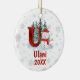 Maßgeschneiderter Brief U mit Monogramm Weihnachtsschmuck. Fügen Sie einfach den Vornamen oder Familiennamen und das Jahr hinzu, um einen wertvollen Sake-Ornament zu machen.