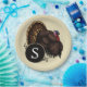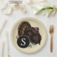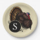 Passen Sie diese herbstgepflegte Papiertafel mit einem Wunschbrief an und genießen Sie auch die Erntedank-Urlaubsaufräumung! Eine Illustration eines bunten Wildtruthühners im Gras ziert diese mit Monogramm beige Papiertüte. Das Monogramm, in einem klassischen Serif-Schriftart, wird auf einem schwarzen Kreis neben dem Vogel zentriert. Es ist perfekt für Ihren Urlaubstisch! Das ist ein tolles Accessoire für Jäger und Naturliebhaber.
