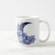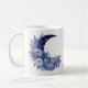 Personalisierte Aquarellmond-Tasse mit einem mystischen, himmlischen und blumengeschmückten Design in lila und blauen Farben mit schönen Blume.