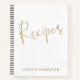 Dieses stilvolle leere Rezept-Journal hat einen modernen minimalistischen Stil mit Goldtext auf weißem Hintergrund. Personalisieren Sie es mit Ihrem Namen. Tolle Geschenkidee.