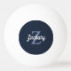 Dieser personalisierte Tischtennisball ist mit einem blauen Monogramm und einem weißen Retro-Skriptnamen auf marinebasischem Hintergrund ausgestattet.