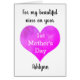 Eine personalisierte Nichte 1. Muttertagskarte mit einem hübschen lila Herz, der "1. Muttertag" sagt. Die Insider-Karte-Nachricht lautet "Ich hoffe, dass heute und jeden Tag mit viel Liebe, Lachen & Spaß gefüllt ist. Alles Gute zum Muttertag!" Die Muttertagsnachricht kann leicht bearbeitet werden. Auf der Rückseite dieser Muttertagskarte befindet sich das gleiche Herz und das Jahr, das Sie leicht bearbeiten können.