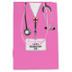 Kreative Krankenschwester Abschluss Geschenktasche mit rosa Krankenhaus-Skulpturen, Stethoskop und großen Glückwünschen. So personalisieren Sie Text zu ändern, um den Namen der Krankenpflegerakademie hinzuzufügen.