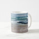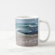 Fügen Sie Ihrem Strandhaus mit diesem personalisierten Tee Kaffee-Tasse Küstenstyle hinzu. Das Design zeichnet sich durch ein einzigartiges Foto der ruhigen blauen Wellen und des weichen Sandes der Küste Melbourne, Australien aus. Der moderne, weiße Text ist anpassbar, sodass Sie Ihren eigenen Familiennamen hinzufügen können.