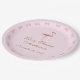 Das Personalisierte rosa Flamingo Design mit einem hellrosa Hintergrund und einem Rand mit rosa Bögen. Im Mittelpunkt des Designs steht ein hübsch rosa Flamingo, das Baby willkommen heißt. Name und Fälligkeitsdatum des Kindes werden unten in einem hübschen, goldenen Schriftart angezeigt. Entworfen, um das Thema "It's a Girl Pink Flamingo" Dusche Einladungen und Kinderzimmer Accessoires.