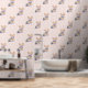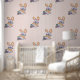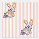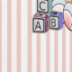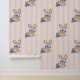 Dieses Tapete hat eine Floppy, gestopfte, kalico Kaninchen, die mit einem Set aus Filzalphabetensteinen vor einem rosa gestreiften Hintergrund spielt. Koordiniert alle Designs und Produkte in HoMeArts' Serie "Blue Kariert Kinderzimmer Art".