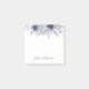 Elegante, moderne Blumennoten mit staubblauen, weißfarbenen Blume wie Rose, Anemonen und Blattwerk mit handgeschriebener Kalligraphie.