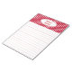 Dieses niedliche Küchennotepad ist mit einem festlich roten und weißen Polka-Dotter-Muster geschmückt. Personalisieren Sie dieses Notizblock, indem Sie den Text an Ihre Bedürfnisse anpassen. Benutzen Sie dieses Notizblock für Rezepte, Shopping-Listen, etc...Das Design stammt aus der Originalkunst.