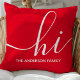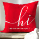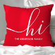 Herzlich willkommen in diesem personalisierten Kissen mit einer warmen und stilvollen Touch. Dieses rote Kopfkissen mit seinem modernen Drehbuch "hi" und seinem anpassbaren Familiennamen ergänzt verschiedene Wohngestaltungen. Ideal, um eine persönliche Touch zu Ihrem Wohnzimmer oder Schlafzimmer hinzuzufügen.