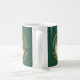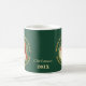 Diese Tasse bietet ein altes Bild des Weihnachtsmannes mit seinem buschigen weißen Bart. Er trägt einen Heiligen mit einer roten Beere. Das Portrait ist umgeben von einem Kranz von Kiefernnadeln auf einem waldgrünen Hintergrund. Der Halbkreis glänzend goldene Text oben sagt Frohe Weihnachten, und am unteren Happy New Year. Die Bilder und Texte werden auf einem grün grünen Hintergrund platziert und zweimal auf der Tasse wiederholt. Zwischen den Bildern ist Ihr personalisierter Text in hellen Gold. Es macht Spaß, Weihnachten auf die altmodische Art zu feiern! *Bitte beachten Sie: Das Bild ist gedruckt und enthält keinen Glitzer.*