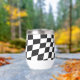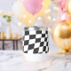 Moderner Retrothermalweintumbler in schwarz-weiß Karos mit individuelle Name