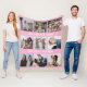 Personalisierte Geschenkdecke mit einem gürtelrosa Hintergrund, der in jede Farbe verändert werden kann, 9 Fotos Ihrer Wahl und 2 Vorlagen mit einfacher Textform, die Sie anpassen können.