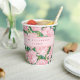 Die niedlichen Papiertassen, die sich perfekt für die Party im Sommer eignen, sind mit rosa Rosen und Grünpflanzen geschmückt. Der Familienname lässt sich mit der Vorlage leicht personalisieren.
