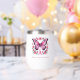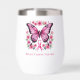 Schöner rosa Schmetterling mit Aquarellblumen und einem rosa Brustkrebs Bewusstsein Band auf diesem Thermalweintumbler. Personalisieren Sie es für Sie oder einen geliebten.