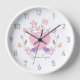 Fügen Sie dem Kinderzimmer oder Schlafzimmer des Kindes eine persönliche Touch mit dieser hübschen, blumengeschmückten Wanduhr hinzu. Delikate Blume, bläuliche Bluebirds und ein rosa Herz schmücken dieses zauberhafte Uhrwerk und sorgen für ein sanftes und feminines Ambiente. Diese Uhr ist in rosa, lila und pfirsichfarbenen Tönen gefertigt und ist eine perfekte Ergänzung zum Kinderzimmer eines Säuglings oder eines Mädchens. Passen Sie dieses Design an, indem Sie den Namen eines Kindes hinzufügen, um ein ideales Geschenk für Babyduschen, Neuankömmlinge, junge Mütter oder jeden besondere Anlass zu schaffen.