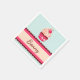 Papierservietten mit rosa Kuchen und Kirsche auf minzblau gestreiftem Hintergrund.