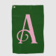 Personalisiert-rosa Monogramm-Initial auf dunkelgr Golfhandtuch