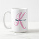 Diese elegante weiße Tasse ist mit einem weichen rosa "K" in extravaganter Schrift ausgestattet, gepaart mit einem anpassbaren Namen der Marine. Ein personalisiertes Geschenk für Frauen oder Mädchen, deren Namen mit K beginnen, ideal für besondere Anlässe oder den Alltag. Entdecken Sie die Pink Extravagant Script Monogram Kollektion, um weitere Initialen zu finden und Ihr Set zu vervollständigen!