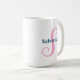 Diese weiße Tasse verfügt über ein zartes rosa "S"-Monogramm in extravagantem Skript mit einem anpassbaren Marineinamen darunter. Ein personalisiertes Geschenk für jeden, dessen Name mit S beginnt - großartig zum Geburtstag, besondere Anlass oder einfach nur, weil! Karo die komplette Pink Extravagant Script Monogram Kollektion für weitere Buchstaben!