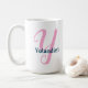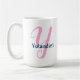 Diese weiße Tasse verfügt über ein hübsches rosa "Y" Monogramm in extravagantem Skript, mit einem anpassbaren Namen für eine personalisierte Touch. Ein nachdenkliches Geschenk für jeden, dessen Name mit Y beginnt - perfekt für Geburtstage, Feiertage oder einfach nur eine süße Überraschung. Karo aus der Pink Extravagant Script Monogram Kollektion um jeden Buchstaben zu finden!