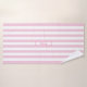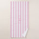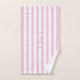 personalisiertes hübsches, rosa und weiß gestreiftes Badetuch-Set mit Ihrem gewünschten Namen, Set in einem modernen rosa Drehbuch mit einem passenden Rahmen. Personalisieren Sie es zu einer perfekten Leckerei für sich selbst oder als besonderes Geschenk an einen Freund oder Familienmitglied.