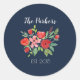 Fügen Sie Ihren Umschlägen oder Gastgeschenken eine besondere Touch mit diesem personalisierten Blumenaufkleber mit roten Blume auf marinebasischem Hintergrund hinzu.