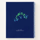 Personalisierte Schule für Fisch Notizbuch. Dunkelblau, aqua, grün und weiß mit Fischschule und Namensfeld.