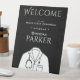 Begrüßen Sie Ihre Gäste bei der Zeremonie mit einem personalisierten, weißen Fellmotiv. Geben Sie den Namen des neuen Arztes für eine persönliche Touch ein. Das Schild ist mit einem schlichten, in Schwarz-Weiß-Linien zeichnend Kunstwerk geschmückt. Wenn Sie Hilfe bei der Personalisierung benötigen, wenden Sie sich bitte an den Designer, um Unterstützung zu erhalten.