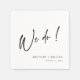 Feiern Sie Ihren besonderen Tag mit unseren eleganten und zeitlosen Personalisierten Schwarz und Weiß Wir machen Script Hochzeit Napkins. Diese Servietten verfügen über ein modernes schwarzes Skript "We Do!" auf weißem Hintergrund und sind damit die perfekte Ergänzung zu Ihren Hochzeitstischeinstellungen. Personalisieren Sie sie mit Ihren Paarnamen und dem Hochzeitstag, um einen wertvollen Sake für Ihre Gäste zu schaffen. Unsere hochwertigen Servietten sind perfekt für jedes Hochzeitsthema und werden Ihre Gäste mit viel Liebe zum Detail beeindrucken. Diese Servietten eignen sich auch für Brautpartys und Verlobungsfeiern. Fügen Sie Ihrer Veranstaltung eine Touch von Eleganz mit unseren stilvollen Servietten hinzu.