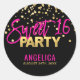 Personalisiert Schwarzes Gold Hot Pink 16 . Geburt Runder Aufkleber