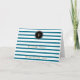 Eine Karte mit Sea Blue Linien, Streifen auf weißer Oberfläche mit personalisiert gepunktetem Kreis in schwarz. Es ist mit Ihrem Initial und Namen angepasst. Es gibt viele gestreifte Dankeschön-Karten in anderen Farben auch im gleichen Stil.