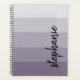 Dieses trendige, moderne Design zeichnet sich durch fünf Farbblockstreifen in Gradientenfarben von leicht bis mittelpflaumig aus. Personalisieren Sie es mit Ihrem Namen in einem Skript für die vertikale schwarze Unterschrift.