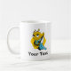 Anpassbare Tasse mit einer Abbildung einer niedlichen Super-Helden-Biene mit einem Kap in Aktion Pose, mit benutzerdefinierter Textvorlage für Ihren Namen oder Ihre Nachricht, Abbildung von MaxiHarmony / Radka Kavalcova