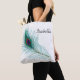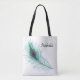 Personalisiert türkisfarbene Pfauenfedertasche. Fügen Sie einfach einen Namen in den personalize Bereich ein.
