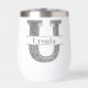 Stilvoll mit der Personalisierten U Initial Silver Monogram Thermal Wine Tumbler. Dieser elegante Schuster zeichnet sich durch ein maßgeschneidertes "U" Monogramm aus und Ihren Namen in einem atemberaubenden silbernen Design aus. Aus haltbarem, isoliertem Edelstahl behalte er Ihre Getränke stundenlang warm oder kalt. Ideal für Abenteuer im Freien, für Arbeit oder einfach nur zum Entspannen bei der Zuhause - dieser Schuster ist funktionell und elegant zugleich