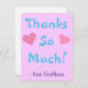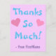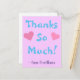 Dieses personalisierte danken-Sie PostkartenAusrüstungsbeschreibungen, welche die Mitteilung "dankt soviel!" auf der Front zusammen mit einer kundengerechten Mitteilung auf der Rückseite. Sie könnte verwendet werden, um Anerkennung zu zeigen jemand, das nettes etwas getan hat.