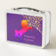 Stilvolle GIRL'S UNICORN LUNCHBOX mit dem Bild von mehrfarbigen UNICORN und dem Hintergrund goldfarbener Sterne vor einem RICH LILA Hintergrund. Es gibt einen Platzhalter und eine Bestätigungsnachricht, die KUNSTBAR ist und mit Ihrem Namen und Ihrer Botschaft personalisiert werden kann. Diese LUNCHBOX würde zu Weihnachten, Geburtstagen oder zurück zur Schule ein schönes Geschenk machen. Auch gut für jeden Einhornventilator. Teil der UNICORN Kollektion von Berean Designs, wo es passende Artikel für Sie gibt, um ein paar tolle Geschenkideen zu kreieren.