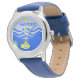 Kinderuhr aus Edelstahl mit blauem Lederarmband