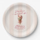 Servieren Sie ein Lächeln mit diesen bezaubernden "She's Been Scooped Up" personalisierten Brautparty-Tellern! Diese Teller mit einem charmanten Eis-Creme-Design-Set und den rosafarbenen, rosafarbenen Sitzstreifen eignen sich perfekt für Ihr Dessert-Bar oder Ihren Hauptgang. Einfach mit dem Namen und dem Veranstaltungsdatum der Braut anpassen, was Ihr Party zum Thema Eis ganz besonders macht. © Kimbellished, LLC