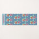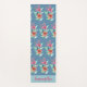 Personalisiert Blue Orange Pink Blumenmuster Yoga Mat: Moderne Yoga-Matte mit orangefarbenen, rosa und blauen Aquarellfarben-Blume und hellen Blätter mit einem beruhigenden blauen Hintergrund. Personalisiert mit Ihrem Namen in einem modernen rosa Typografie-Skript.