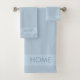Elegante Zuhause süße Zuhause auf wunderbar blauem Badetuch Set. Text kann personalisiert sein.