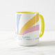 Personalisierte moderne, bunte abstrakte Blume mit eigenem Text und Liebe Herz Detail halten Sake Tasse aus Ricaso - fügen Sie Ihre eigenen zwei Zeilen Text - personalisierte Sake-Geschenke machen die besten Geschenke. Ändern Sie den Text in Anzug Ihrer Anforderungen. Geschenk des Glücks