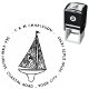 Das Design eines Segelbootes mit einem maritimen Ambiente. Ändern Sie den gebogenen Namen und die Adresse, um sie anzupassen.