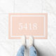 Modernes, minimalistisches Doormat personalisiert mit Ihren Zuhause-Adressnummern oder anderen benutzerdefinierten Texten. Klicken Sie auf die Schaltfläche Anpassen. Wählen Sie eine beliebige Hintergrundfarbe aus, ändern Sie die Schriftart, fügen Sie Ihren eigenen Text und Ihre Fotos hinzu, um Ihren eigenen Stil zu erhalten.