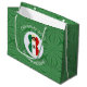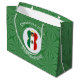 In der großen Geschenktasche befindet sich ein Engel, der die Fahne Mexikos trägt, für die Dekoration der Weihnachtsgeschenke. Der Weihnachtsengel der mexikanischen Fahne befindet sich in einem weißen runden Fraktal mit quadratischen Plätzen. Der Hintergrund ist ein grünes Fraktal von quadratischen Quadraten. Fügen Sie Ihren eigenen Text oder personalisieren Sie mit einem Namen und das Jahr. Design zeigt auf beiden Seiten der Geschenktasche. Fügen Sie Ihren Urlaubsgeschenken eine schöne Touch hinzu, indem Sie Ihr Erbe teilen.